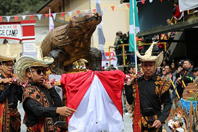 Central Services Division and Flobamora (Flores, Sumba, Timor, Rote, Alor), presenting a Komodo replica that reflects the symbol of strength, resilience, and uniqueness. In the context of independence celebration, this ornament represents the spirit of the Indonesian nation that is strong, resilient, and rich in diversity. |