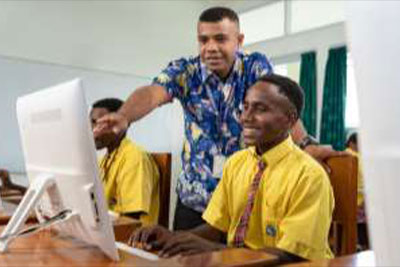 Papua Taruna Boarding School (SATP) students learning computer usage. |