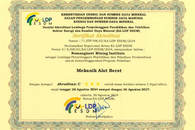 PT Freeport Indonesia’s Institut Pertambangan Nemangkawi/ Nemangkawi Mining Institute (IPN/ NMI) was awarded C Accreditation certification for Training for Heavy Equipment Mechanics, from the Accreditation Commission for Education and Training Institutions in the Energy and Mineral Resources Sector (KA-LDP ESDM). |