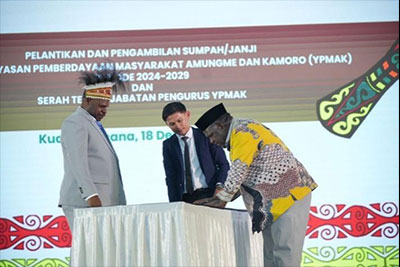 The Board of Trustees of the Amungme and Kamoro Community Empowerment Foundation (YPMAK) for the 2024-2029 period, as the manager of PT Freeport Indonesia's (PTFI) partnership fund, was officially sworn in at the Multipurpose Building, Kuala Kencana, Wednesday (12/18).
