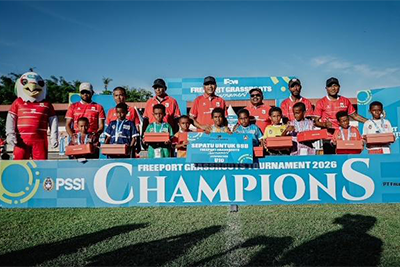 Jayapura, 21 April 2026 - Persatuan Sepak Bola Seluruh Indonesia (PSSI) bersama PT Freeport Indonesia (PTFI) terus mengembangkan bakat sepak bola usia dini di Papua melalui Freeport Grassroots Tournament (FGT) 2026 yang berlangsung di Stadion Mandala, Jayapura, Papua, 17-18 April 2026.