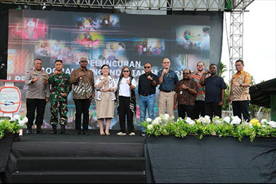 Peluncuran Program Kesehatan Terintegrasi untuk Papua Sehat melalui pengendalian malaria dan pencegahan stunting. Kolaborasi multipihak ini terdiri dari PT Freeport Indonesia, Pemda Mimika, Badan Pengembangan Internasional Amerika Serikat (USAID), PT AEA (ISOS) dan Wahana Visi Indonesia (WVI). |