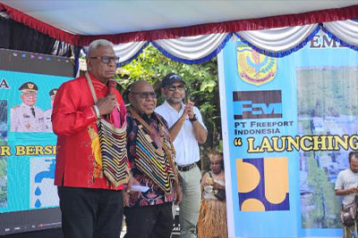 Direktur & EVP Sustainable Development PTFI Claus Wamafma dalam sambutannya menyampaikan, Kabupaten Mimika mengalami pertumbuhan yang sangat pesat. Salah satu pencapaian penting adalah pemenuhan kebutuhan dasar masyarakat akan air bersih.